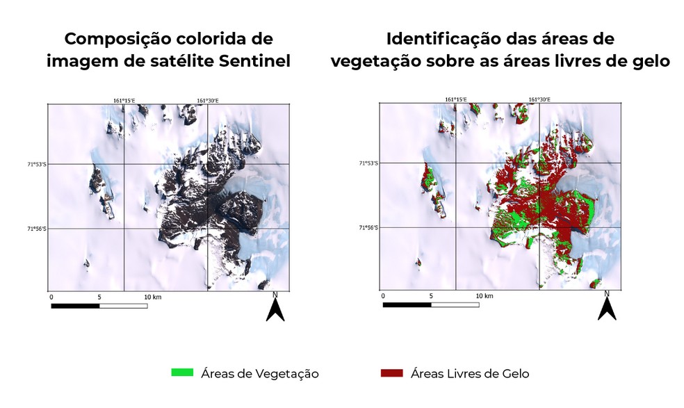 O novo levantamento do MapBiomas usou imagens de satélite obtidas entre 2017 e 2025. “Mapear áreas livres de gelo e cobertas por vegetação é crucial para o monitoramento dos impactos das mudanças do clima no ambiente antártico”, explica Fonseca.