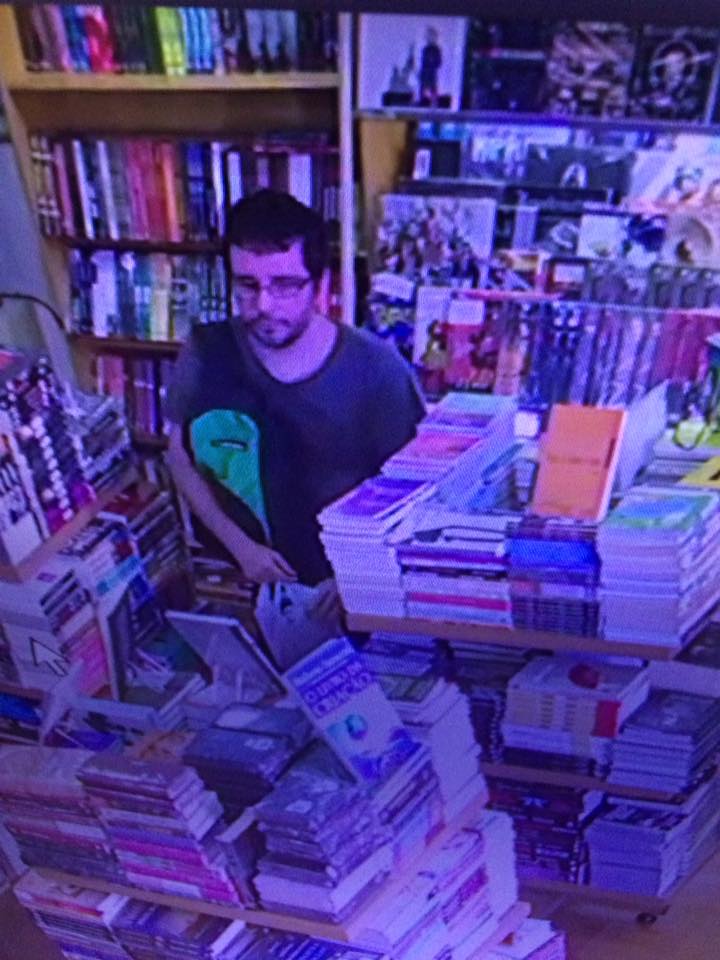 As câmeras de segurança da livraria Papirus, localizada na Rua Amando de Barros, na região Central de Botucatu, flagraram um homem furtando livros do local.