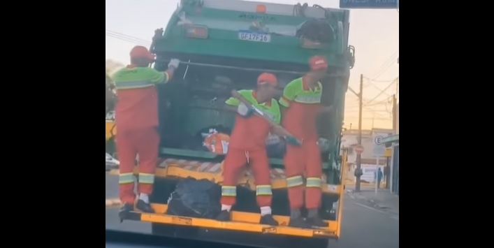 Um vídeo que mostra três coletores de lixo de Botucatu tem circulado bastante nas redes sociais. Um dos coletores, o mais descontraído, que simula que está escoltando o colega de trabalho, que recolhe os sacos de lixo das calçadas na Avenida Leonardo Villas Boas, sentido a Avenida Dante Delmanto, se chama Vitor Henrique Celestino, de 30 anos.