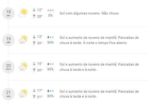 A previsão para Botucatu é de aumento da temperatura nos próximos dias. A tendência é que a máxima possa ultrapassar os 30º. No sábado, 19 de novembro, há previsão de pancadas de chuva à tarde.