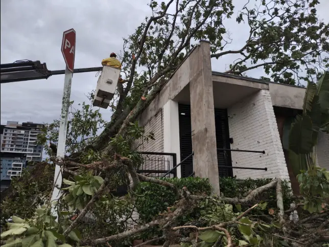 Desde o início da ocorrência, mais de 150 servidores municipais atuaram de forma ininterrupta em diversas frentes de trabalho, como a desobstrução de vias, retirada de cerca de 100 árvores caídas, apoio às famílias em situação de risco, limpeza da cidade, além da reorganização de unidades de saúde e escolas impactadas.