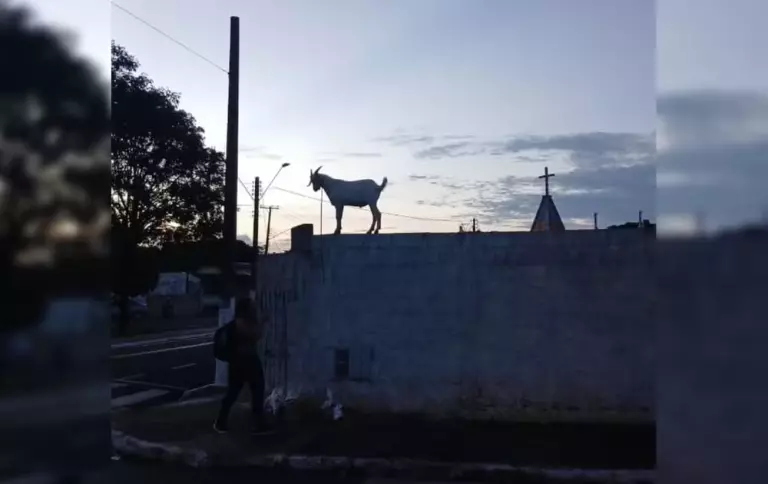 Um cabrito chamou a atenção de moradores ao subir no muro do Cemitério Municipal de Assis (SP) e ficar preso no alto. A cena inusitada foi registrada no fim da tarde de terça-feira (17).