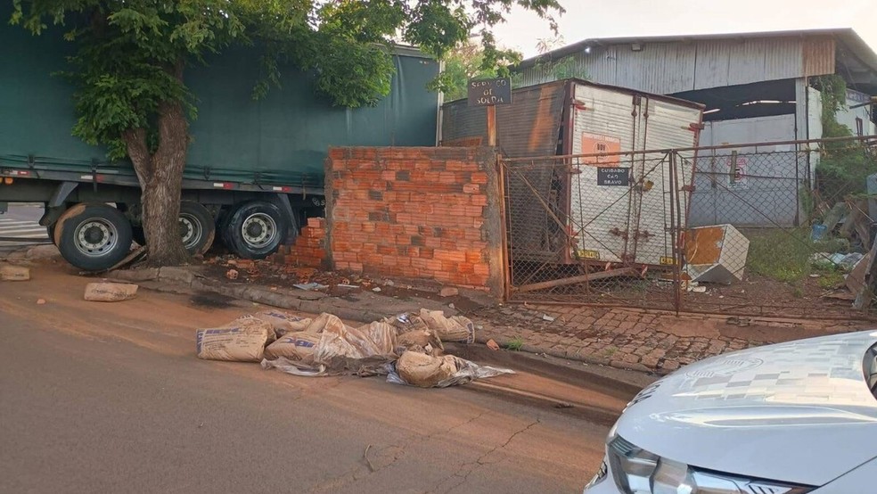 Um caminhão atingiu o muro de um ferro-velho, na manhã desta terça-feira (3), em Lençóis Paulista (SP).