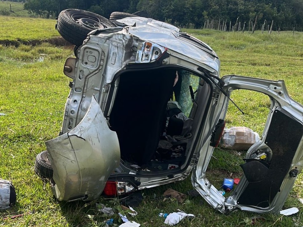Um carro que transportava mãe e filha capotou na tarde desta sexta-feira (24), na Estrada Municipal João Dorigon, na Serra de São Pedro (SP).