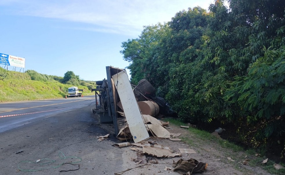 Segundo a Polícia Rodoviária, o caminhão fazia uma ultrapassagem quando parte da carga, formada por grandes bobinas, se soltou e caiu sobre os trabalhadores, que estavam às margens da pista. As vítimas morreram no local.