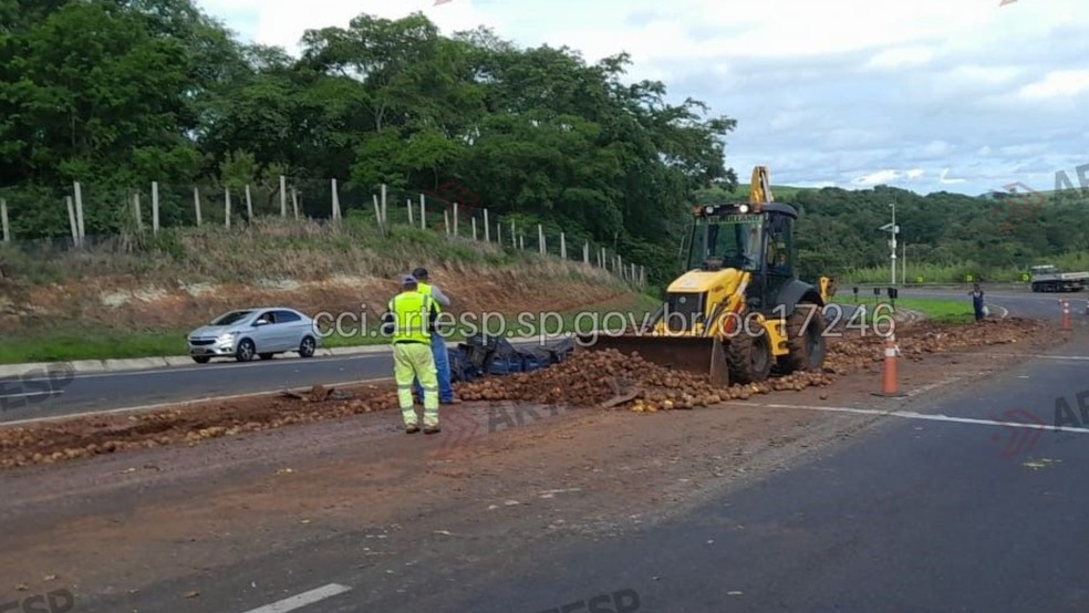 Ainda segundo a Artesp, o motorista teve ferimentos leves e a limpeza total do local só foi finalizado durante a tarde pois, apesar do transbordo da carga ter sido realizado, ainda havia frutas no local.