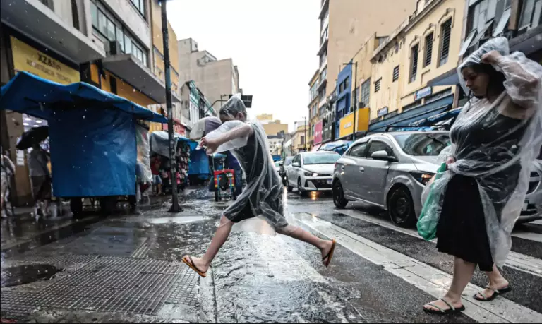 Alerta amarelo na porção norte do estado e laranja na sul – chuvas intensas, perigo potencial.
