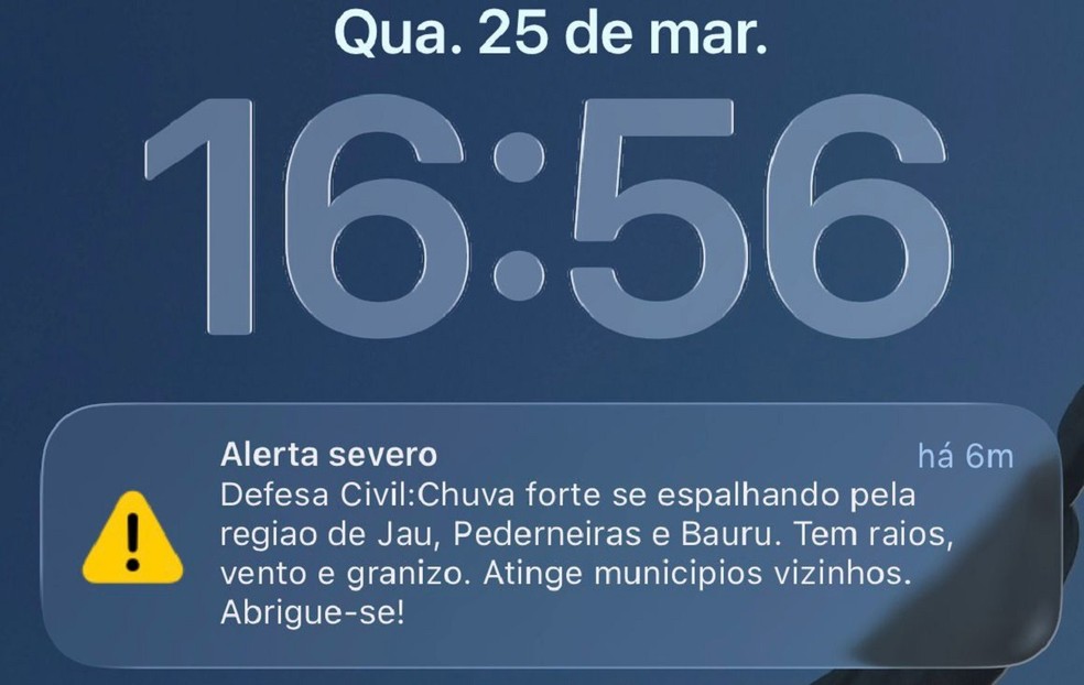 No fim da tarde, a Defesa Civil do Estado emitiu alerta de chuva forte para as regiões de Jaú, Pederneiras e Bauru, com possibilidade de raios, ventos intensos e queda de granizo.