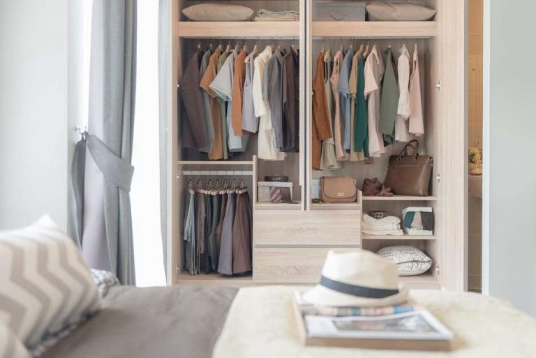 Outra dica é organizar as peças por grupos, por exemplo: todas as camisetas em uma gaveta, as camisas penduradas no cabide, calças junto com todas as calças… e por aí vai.