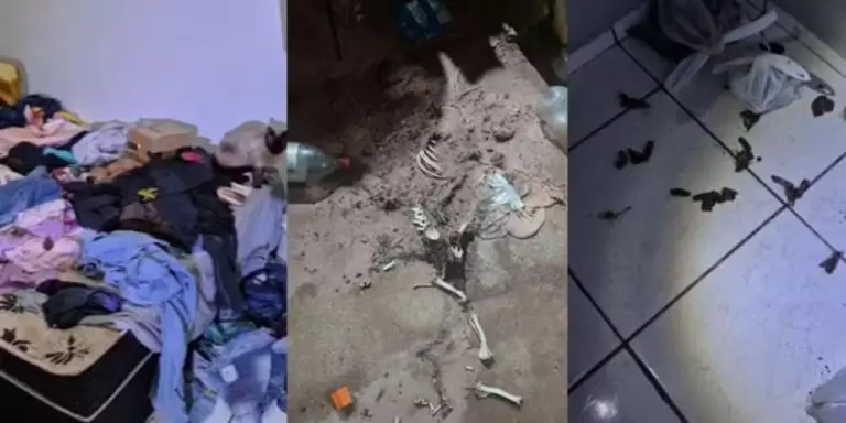 Um animal também foi encontrado em situação de maus-tratos na casa. O cachorro estava muito magro e sem acesso à água e comida.