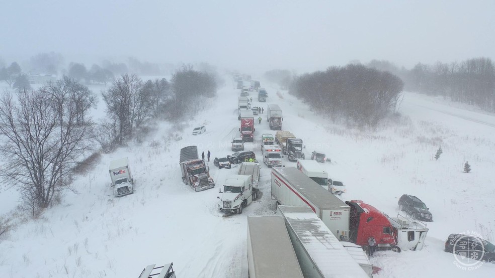 Um engavetamento envolvendo mais de cem veículos, incluindo, pelo menos, seis caminhões, fechou uma importante rodovia em Grand Rapids (Michigan, EUA) após uma forte nevasca na manhã desta segunda, 19.