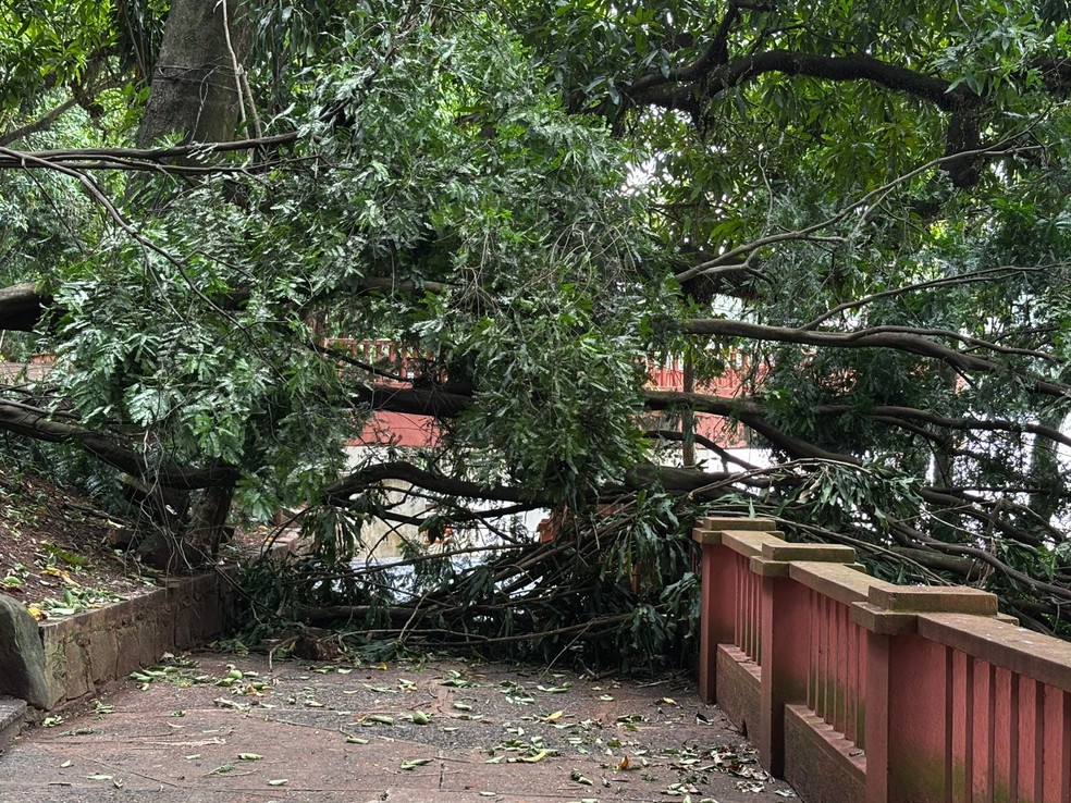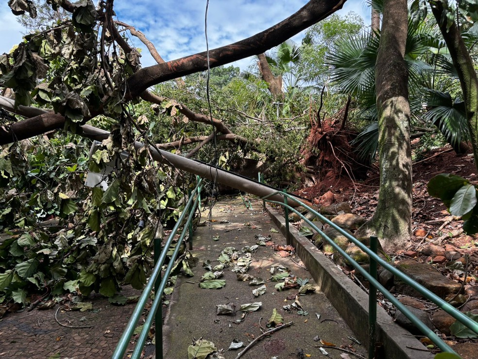 Algumas árvores atingiram e destruíram placas de sinalização, calçadas, postes e estruturas do próprio parque, como o mural de mosaico que conta a história da fundação de Piracicaba e o canal de água que atravessa o ambiente. O acesso ao Aquário Municipal permanece interditado, com escadarias e passagens bloqueadas por troncos e árvores caídas.