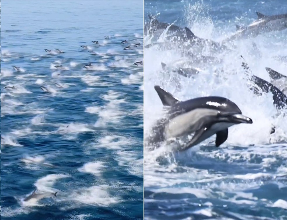 “5 mil golfinhos em debandada: um dos espetáculos mais inspiradores da Terra!”, legendou ele, acompanhando as imagens.