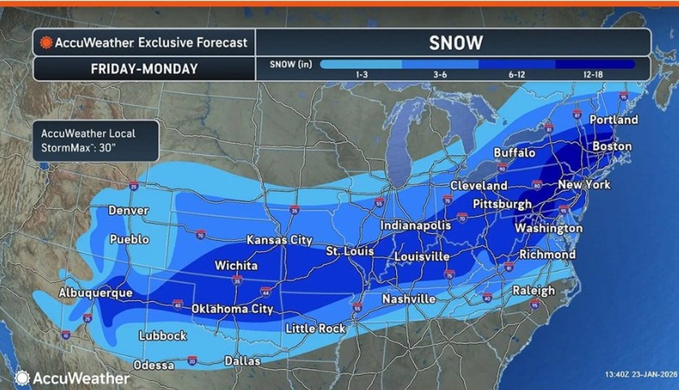 Uma forte tempestade de inverno deve atingir cerca de 150 milhões de pessoas nos Estados Unidos entre sexta-feira e o fim de semana, ocasionando neve intensa, chuva congelante e temperaturas extremas do centro do país até a Costa Leste. O evento deve provocar interrupções no transporte, quedas de energia e riscos diretos à população mais vulnerável, segundo o Serviço Nacional de Meteorologia dos EUA.