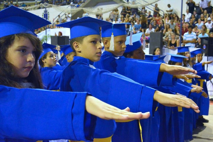 Com o Ginásio Municipal de Esportes “Dr. Mário Covas Júnior” totalmente tomado por pais e convidados, a Secretaria Municipal de Educação realizou nas noites de quarta e quinta-feira, 06 e 07, as solenidades de formatura dos alunos dos quintos e nonos anos das escolas de Ensino Fundamental da Rede Municipal de Ensino.