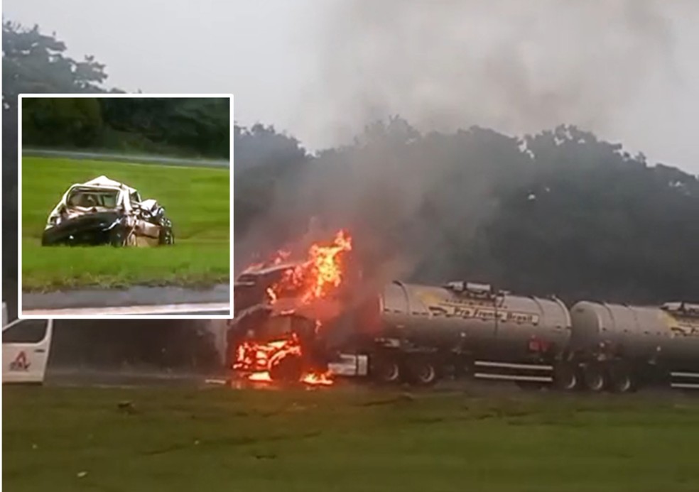 O engavetamento aconteceu por volta de 14h55, no km 272. Imagens compartilhadas nas redes sociais mostram uma carreta em chamas e um carro destruído.