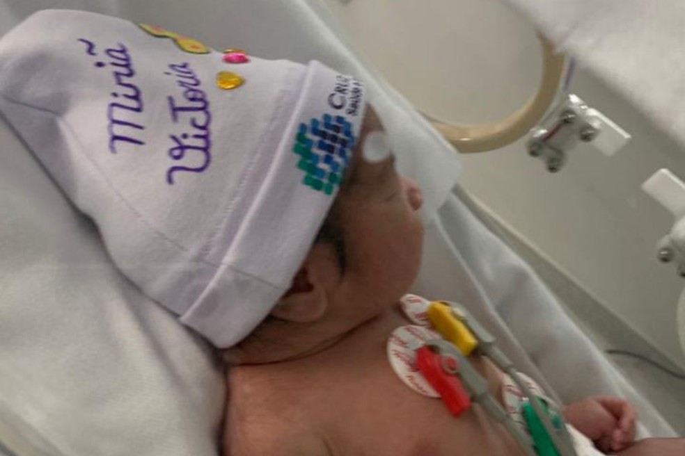 Após meses aguardando a chegada da “promessa de Deus” na família, a pequena Miriã nasceu com 2,5 kg e 46 centímetros. Carmelina estava na 36ª semana de gestação, realizada por meio de fertilização in vitro (FIV).