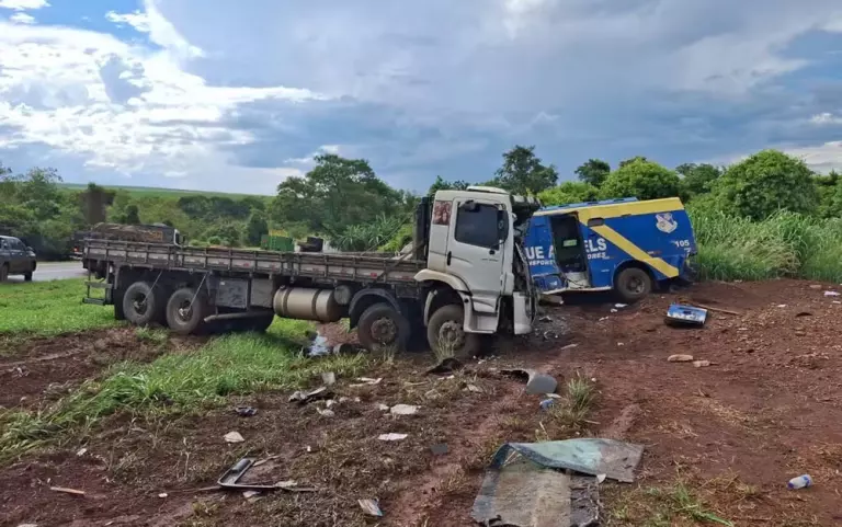 Um acidente entre dois caminhões e um carro-forte causou uma morte na tarde desta quinta-feira (8) na Rodovia Deputado Cunha...