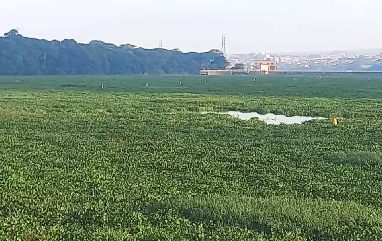 Os aguapés tomaram conta do Rio Tietê no trecho entre Barra Bonita e Igaraçu do Tietê (SP) e transformaram a paisagem em um verdadeiro...