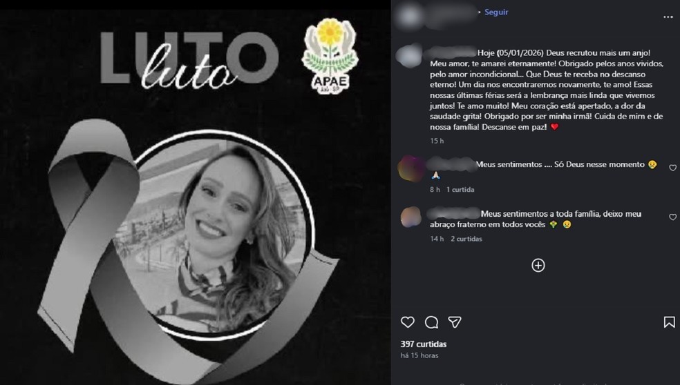 “Deus recrutou mais um anjo! Meu amor, te amarei eternamente! Obrigado pelos anos vividos, pelo amor incondicional… Que Deus te receba no descanso eterno! Um dia nos encontraremos novamente, te amo! Essas nossas últimas férias será a lembrança mais linda que vivemos juntos! Te amo muito!”, diz parte da homenagem publicada no Instagram.