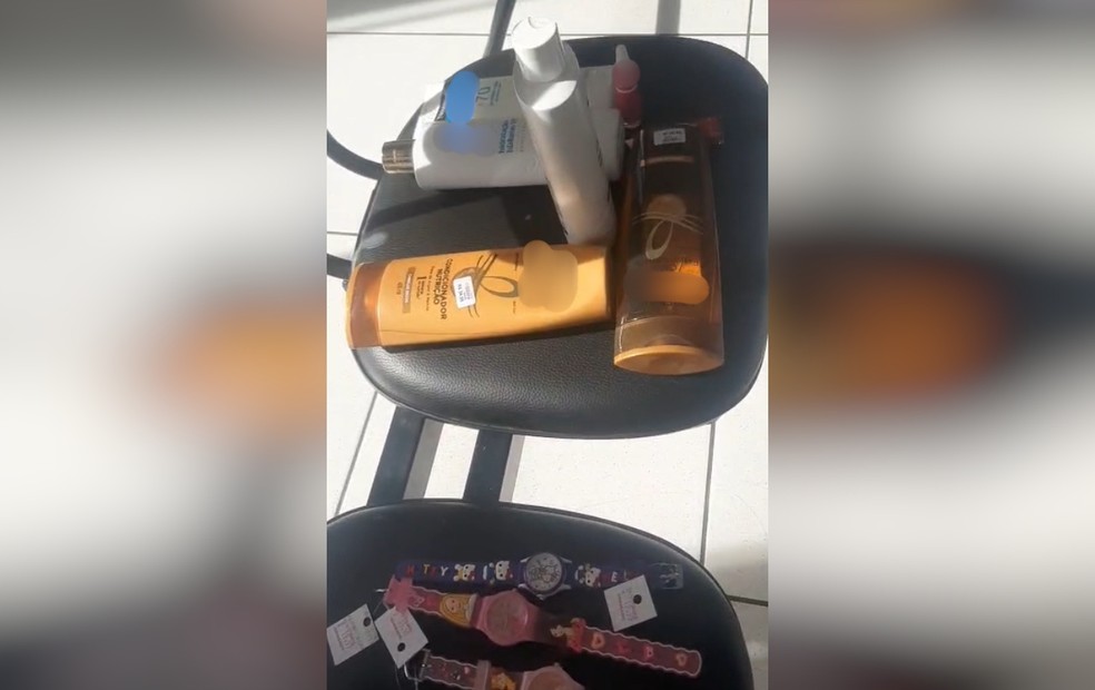 Nas imagens feitas pela Polícia Militar, entre os itens recuperados, estão doces, artigos de papelaria, roupas, bolsas, brinquedos, bijuterias, shampoo, condicionador e até utensílios de cozinha. Conforme o boletim de ocorrência, os prejuízos estimados das lojas superam R$ 4,7 mil.