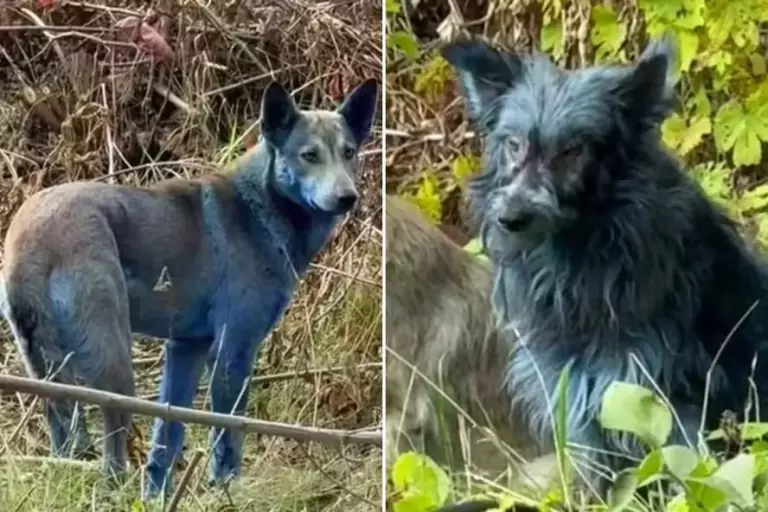 “Estamos no local capturando cães para esterilização e encontramos três completamente azuis. Ainda não sabemos o que está acontecendo”, informou a organização em um post no Instagram que já ultrapassou 330 mil visualizações.