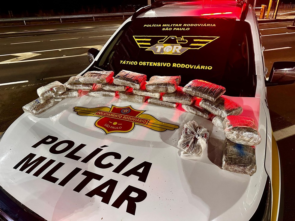 Segundo a Polícia Rodoviária, o veículo foi abordado próximo ao km 234 e, no interior do carro, foram localizados 20 pacotes da droga, que é uma variação da maconha.