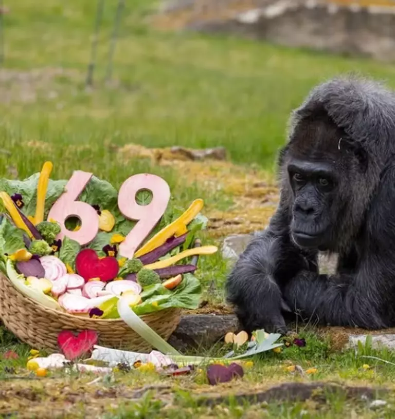 A gorila mais velha do mundo em cativeiro celebrou nesta segunda-feira (13) seu 69º aniversário no Zoológico de Berlim, na...