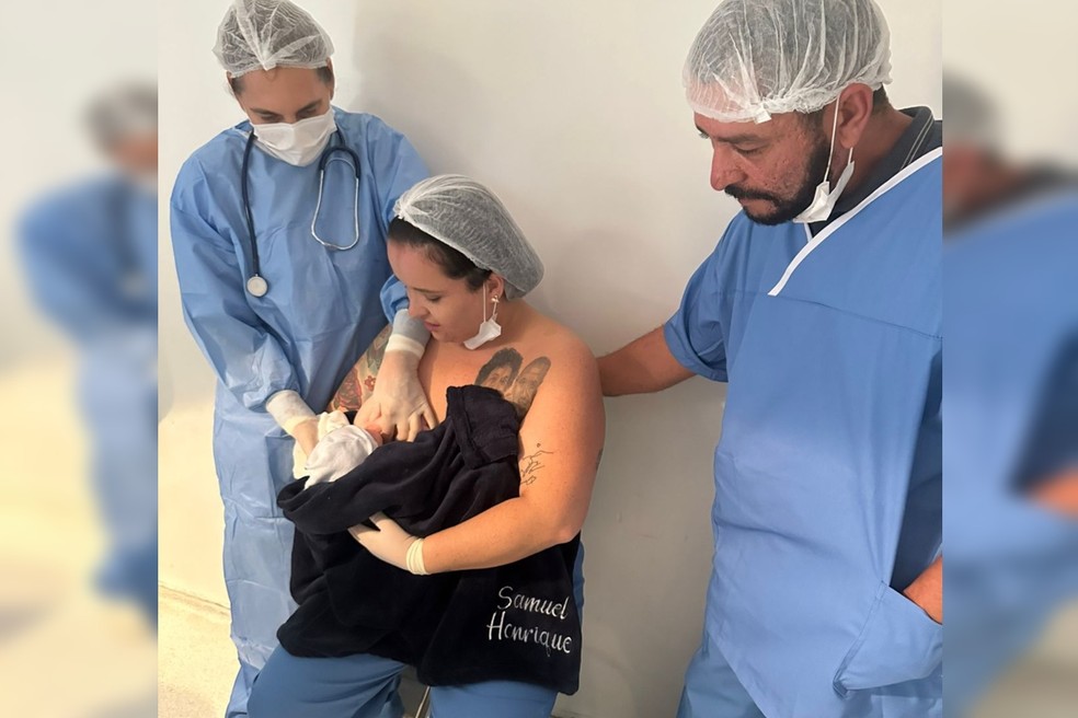 O pequeno Samuel nasceu às 18h33, com 2,5 kg, e também passa bem. A mãe, Mary Ellen Marques, e o pai, Danilo Marques, acompanharam o parto dentro do centro cirúrgico.