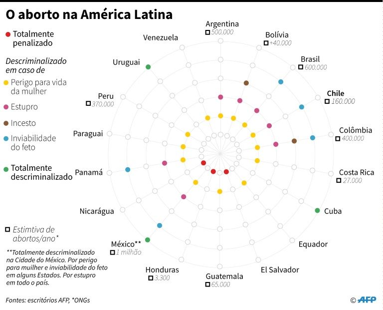 Desde 1931 e por mais de 50 anos, o aborto foi permitido no Chile em casos de perigo para a vida da mãe ou inviabilidade do feto, mas o ditador Augusto Pinochet, apoiado pela Igreja católica, proibiu a prática pouco antes do fim do seu regime (1973-1990).