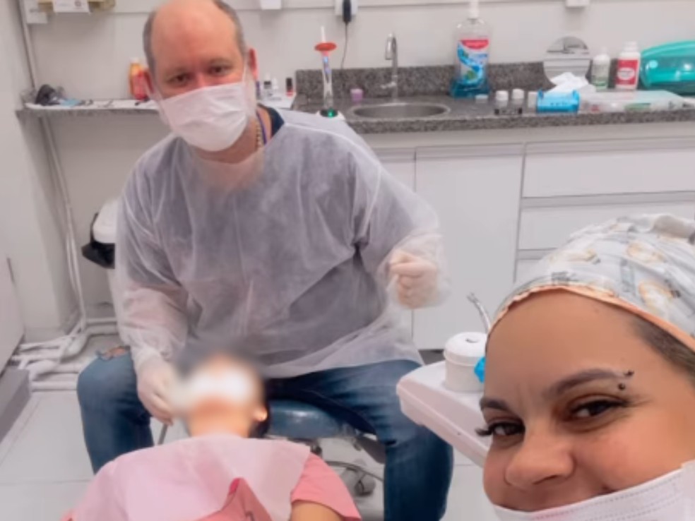 Em publicações nas redes sociais da clínica odontológica, é possível ver Thais, companheira de Lineu, auxiliando no trabalho do dentista.