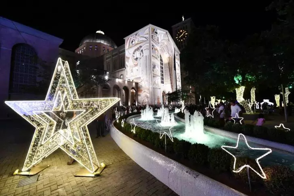 O presépio e a iluminação de Natal do Santuário Nacional de Aparecida foram inaugurados na noite do último sábado (29).