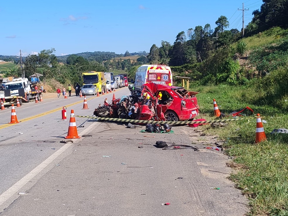 Uma pessoa morreu e outras duas ficaram gravemente feridas após um acidente envolvendo dois carros na rodovia SP-79, entre Tapiraí e Piedade (SP), na tarde desta segunda-feira (23).