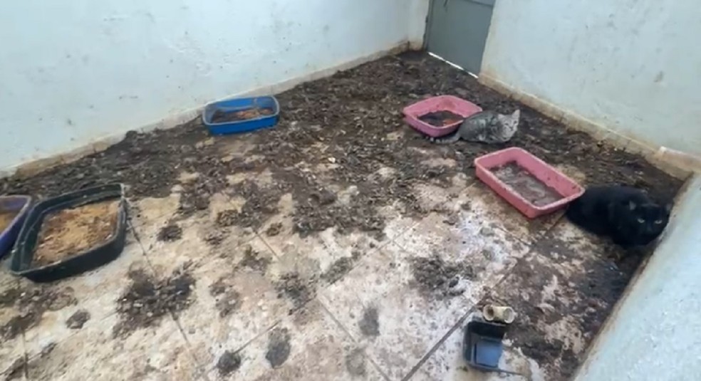 Segundo a corporação, o imóvel apresentava acúmulo de dejetos e falta total de higiene em todos os cômodos. Ao todo, foram resgatados 40 gatos, cinco cães e um jabuti, todos em situação de maus-tratos.