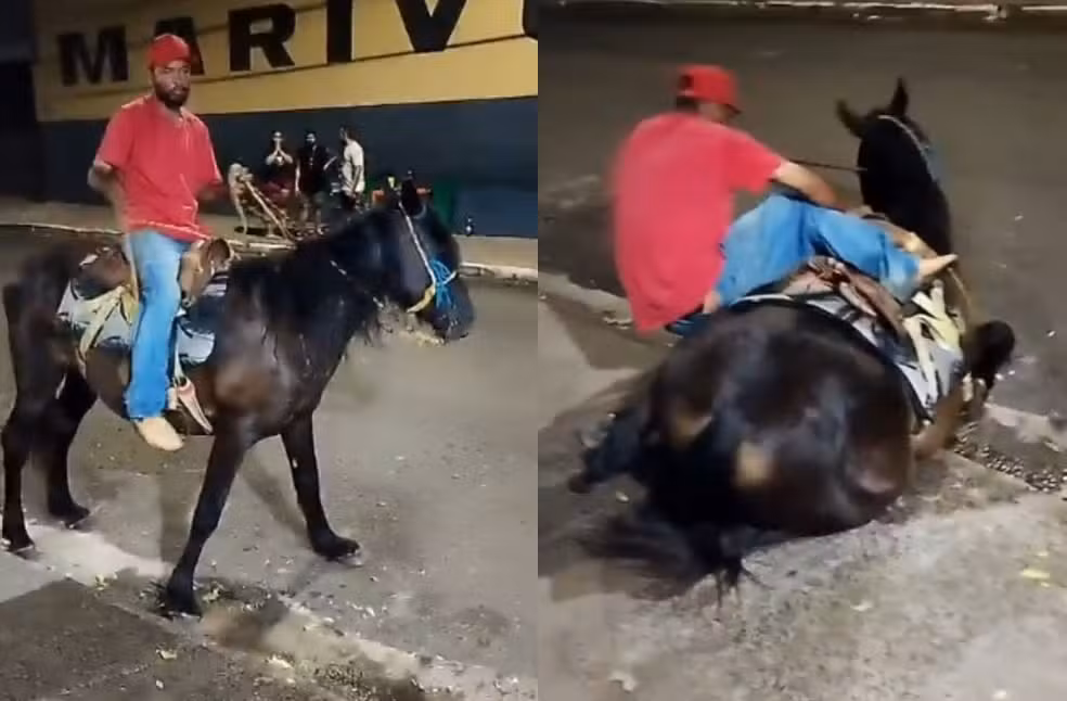 Ainda assim, ele insistiu, e o animal voltou a cair, desta vez com o homem montado. Segundo o registro, o homem aparentava estar embriagado.