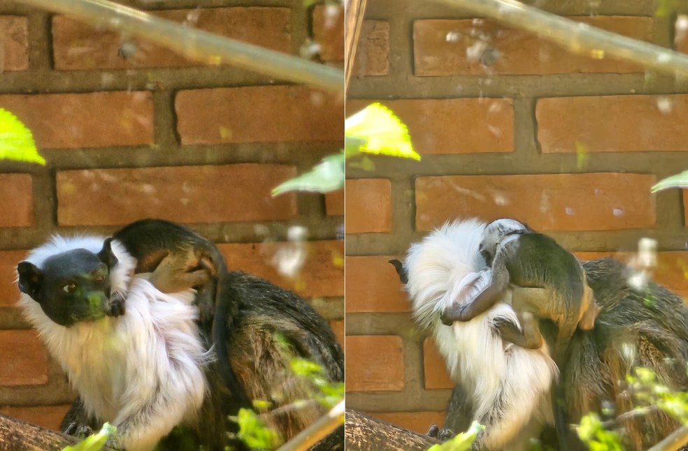 Outro nascimento de destaque é o do sauim-de-coleira, espécie ameaçada de extinção. O filhote já está sob os cuidados dos pais no mesmo recinto que o irmão, que nasceu em 2024.