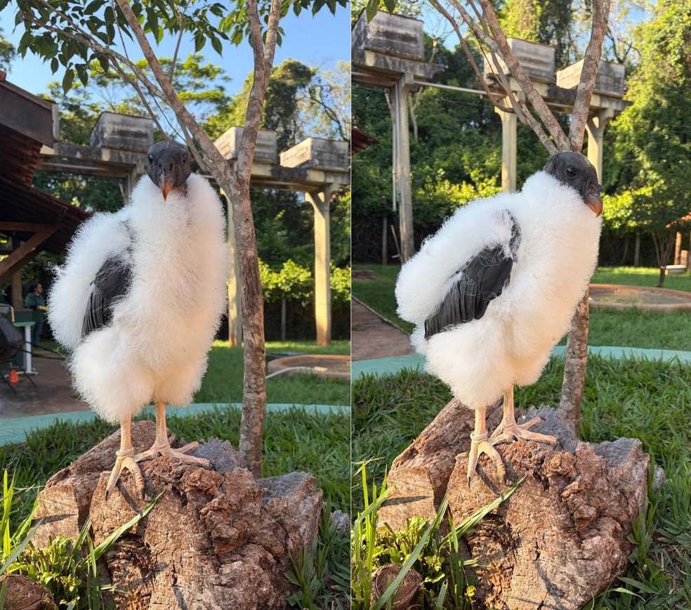 O filhote de urubu-rei, também uma fêmea, nasceu no segundo semestre deste ano. A espécie brasileira é de grande importância ecológica por atuar na limpeza ambiental e no controle natural de doenças ao se alimentar de animais mortos. O filhote nasceu em 15 de setembro, após cerca de 40 dias de incubação feita pelos pais.
